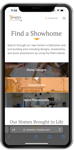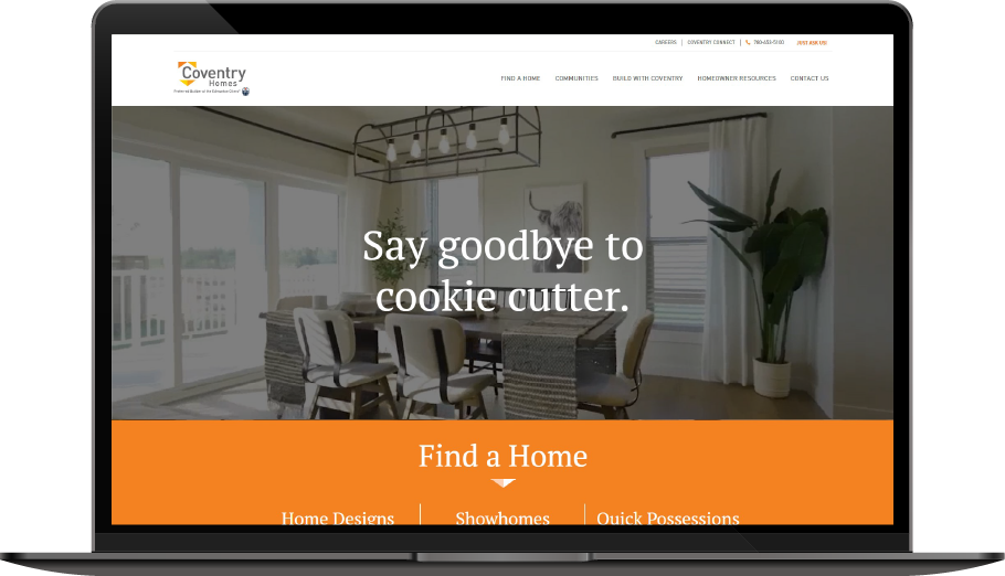 The new design is vibrant, clean and professional. By adding beautiful video of Coventry’s showhomes and creating a more streamlined UI, the website now functions better and has yielded longer visits by users.Coventry Homes is an Edmonton-based home builder who specializes in single-family homes. Coventry’s old website was outdated and not user friendly, making it challenging for visitors